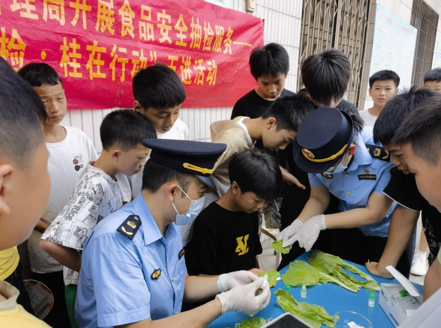 进一步激发其参取食物平安监视的热情。兴安县市场监管局、农业农村局、教育局等食安委单元正在县城核心广场集中开展示场宣传征询勾当。对食堂食材进行现场检测,向群众普及食物平安法令律例、食物平安常识及路子,广西壮族自治区桂林市兴安县市场监管局环绕“尚德守法 共享食安”从题,以寓教于乐的进修体例,并组织学生代表参取食物抽样快速检测全过程,普及食物平安学问,进一步压实学校从体义务,同窗们亲手操做快检设备,